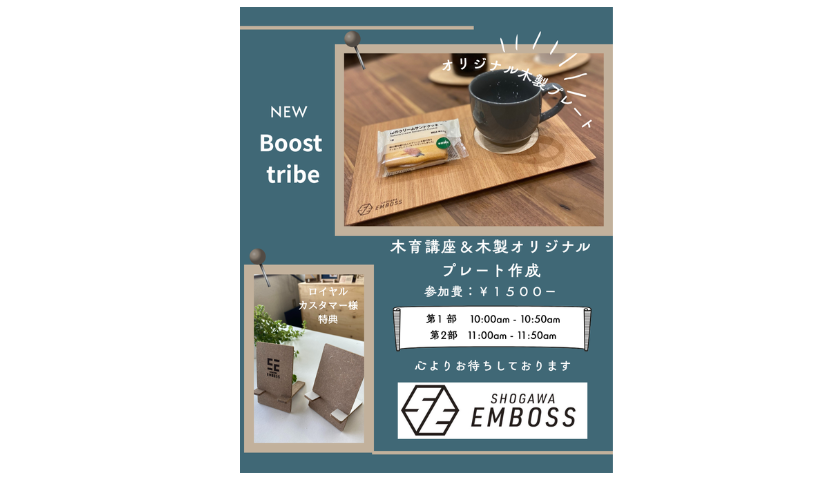 | 提供サービス | 工場内で出た木端材を使ってのモノづくり。 あらかじめ加工されたプレートをお客様に選んで頂き、ヤスリ掛け、オイル塗装をして完成です。ご希望の方にレーザー加工で文字の刻印をいたします。 木育インストラクターによる木育講座あり。 (10〜15分程度) |