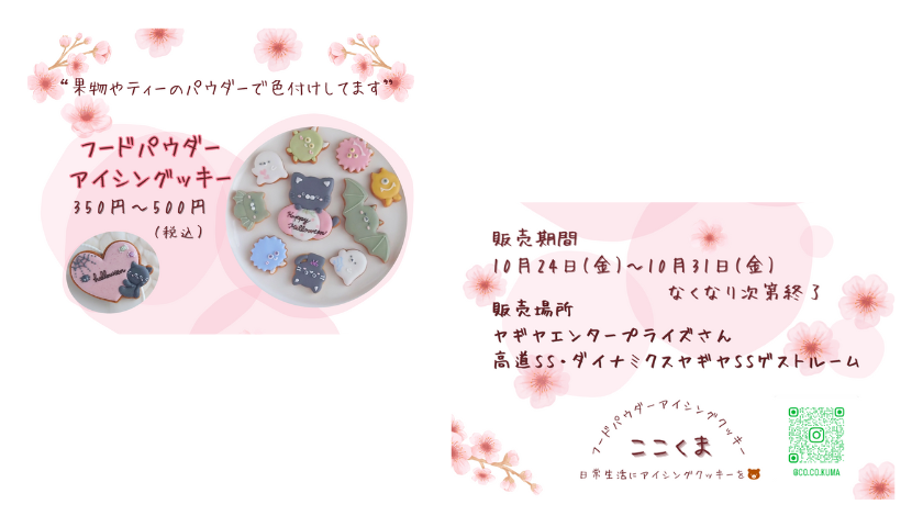 ここくま![]() 日常生活にアイシングクッキーを! 国産小麦・バターのクッキー生地 果物・野菜パウダー等の天然色素で色付け ”菓子製造許可”のあるキッチンを借りて作ってます 土日限定で 出張レッスン・ワークショップ 可能です お問合せはInstagramのDMにお気軽にどうぞ 夢はアイシングクッキー屋さん♪ 食品衛生責任者 jsaアイシングクッキー認定講師 |