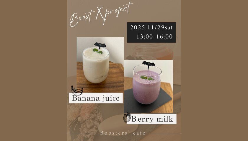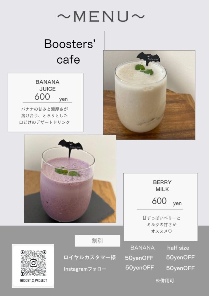 | 参加費 | バナナジュース 600円・ベリーミルク 600円 |