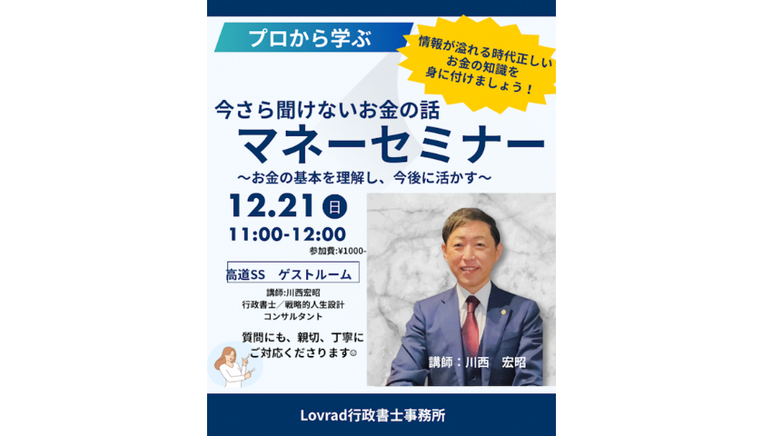 | 提供サービス | プロから学ぶ 今更聞けないお金の話 マネーセミナー ~お金の基本を理解し、今後に活かす~ |