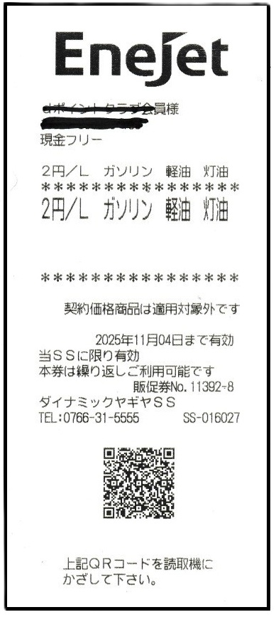 ※レシート2次元コードは、給油2,000円以上で発券されます。