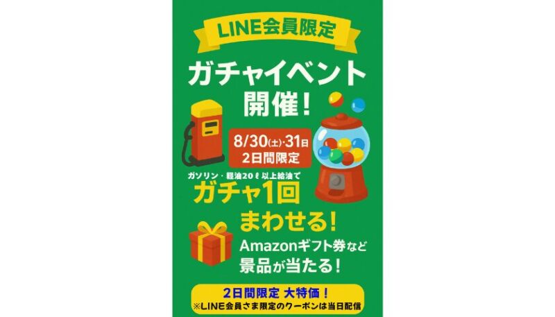2025.08.22 高道SS [高道SS] LINE会員さま限定イベント開催! ■ 開催日時:2025年8月30日(土)・31日(日)の2日間 9:00~19:00 ■ 開催内容: ①LINE会員さま限定でガソリン・軽油を大特価にて…